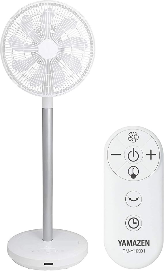 このモデル、首の高さが57/100cmのどちらかで、僕の場合中間のポールを外して57㎝の高さで使っている。自由に高さが調整できるものと思っていたので、その点は残念だったけれど、声で制御できる点と超微風な点に満足してます。